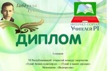 Кичә Казан кооператив институтының Дәрдемәнд исемендәге Татар мәдәнияте үзәгендә «Тукайга мәхәббәт илә...» дип исемләнгән IV Бөтенроссия шигырь сөйләүчеләр конкурсына нәтиҗә ясалды. Мэктэпкэ эзерлек торкемендэ тэрбиялэнуче Нигмятзянова Раяна lll дэрэжэдэге Диплом белэн булэклэнде. Котлыйбыз!