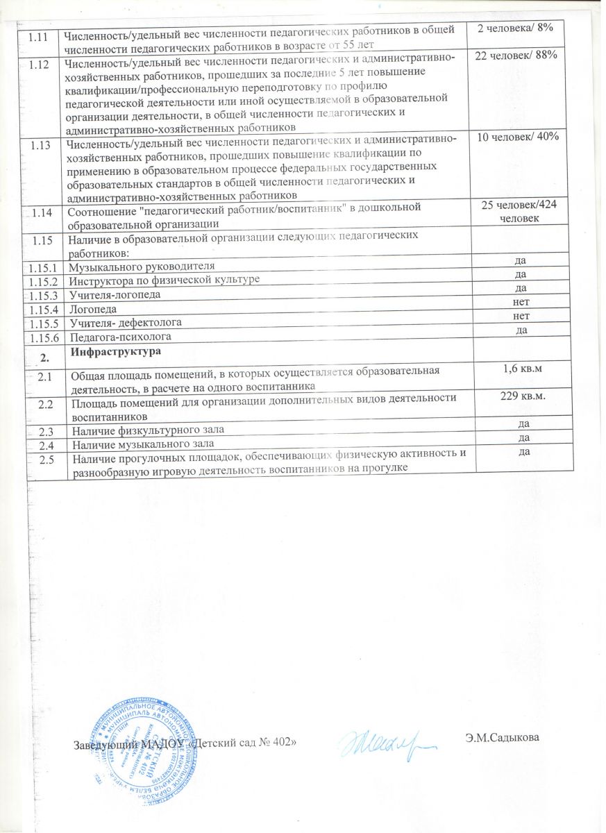 Показатели деятельности МАДОУ "Детский сад №402" за 2019 год, подлежащей самообследованию