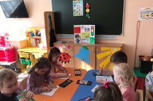 В подготовительной группе была проведена патриотическая беседа "Государственные символы России". Тема была закреплена аппликациями в виде воздушного шара с использованием цветов нашего триколора.