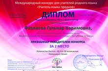 Наш воспитатель по обучению татарскому языку Фазлиева Гульнар Каримовна стала победителем в номинации "Вокал" в Международном конкурсе для учителей родного языков "Учитель языка предков".Поздравляем и желаем ей дальнейших успехов!