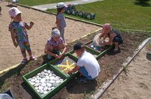 Педагоги совместно с детьми создали "Летнюю дорожку здоровья".Она выполнена в нетрадиционной технике, с использованием подручных и безопасных материалов (пластиковые крышки от бутылок, пуговицы, морские камни и др.). Удобство составляет то, что секции данной дорожки здоровья можно менять между собой, заменять компоненты на другие, более новые и необычные.