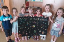 Дети сегодня знакомились с таинственным космосом,узнали для себя много нового.Свои знания,эмоции дети постарались передать в своих рисунках, плакатах.