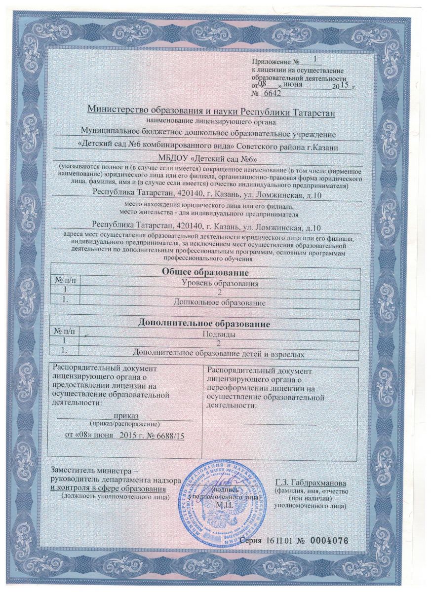 Муниципальное бюджетное дошкольное образовательное учреждение "Детский сад №6 комбинированного вида" Советского района г.Казани