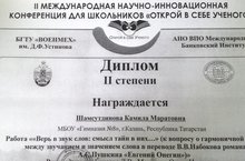 От всей души поздравляем ученицу 11А класса Шамсутдинову Камилу с отличным выступлением на Международной научно-инновационной конференции для школьников "Открой в себе ученого" (руководитель: Брусова Людмила Васильевна, Морозова Ольга Ивановна).