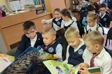 Сегодня ученики 1В класса побывали в районной библиотеке. Экскурсия была посвящена 195-летию Л. Н. Толстого. Работники библиотеки радушно встретили ребят и предложили совершить увлекательное путешествие в мир книг. Гимназистам рассказали о правильном обращении с книгами, как выбрать книгу, как вести себя на абоненте и в читальном зале. Очень важно приобщать детей к книжной культуре, развивать кругозор, воспитывать любознательного грамотного человека.