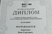 Поздравляем ученика 10В класса Харитонова Ивана - призёра регионального этапа Всероссийской олимпиады школьников по истории. Желаем всегда быть на высоте своих возможностей, талантов, способностей, своего мастерства. Пусть каждая цель и каждое твое стремление непременно знаменуется победой, пусть каждый день в твоей жизни будет ярким, насыщенным и грандиозным, как этот.