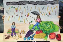 С целью формирования привычек здорового питания АО "Департамент продовольствия и социального питания г.Казани" организовал конкурс творческих работ "Здоровое питание". Работа нашей ученицы 4В класса Булашовой Алены вошла в 10- ку лучших. Тема рисунка - пропаганда здорового питания.На сегодняшний день это актуально, ведь дети зачастую не понимают вред и пользу разных продуктов питания.