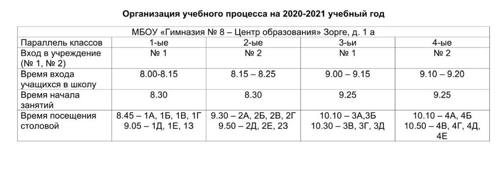 Организация учебного процесса на 2020/2021 учебный год 03.09.2020