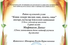 20 нче ноябрьдә район күләмендә үткәрелгән «Кояш гомере телим мин, әнием, сиңа!» шигырь укучылар конкурсында катнашып, Мифтахов Данил (6 нчы “А”) - I урын, Мифтахов Камил (4 нче “В”), Матвеева Алина (7 нче “А”) – III урын, Әхмәтҗәнова Адилә (8 нче “В”) дипломга лаек булды. Укучыларыбыз сәнгатьле шигырь уку осталыкларын күрсәттеләр. Афәрин, балалар!
