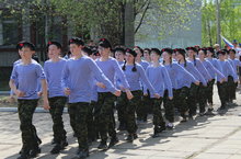 В преддверии великого Дня Победы в гимназии прошёл смотр строя и песни. Учащиеся 2-8 классов дружными рядами прошли торжественным парадом.