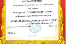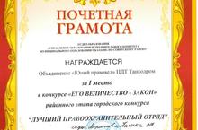 Объединение "Юный правовед" заняло 1 место на районном жтапе городского конкурса "Лучший правоохранительный отряд"