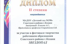 В декабре дружный коллектив МАДОУ "Детский сад №298 комбинированного вида" участвовал в творческом фестивале педагогов "ЗВЕЗДОПАД - 2018" и занял 2-е место по Советскому району. Поздравляем с победой всех участников и всех, кто оказал большую помощь в подготовке к данному мероприятию, и желаем дальнейших успехов!!! УРА!!!