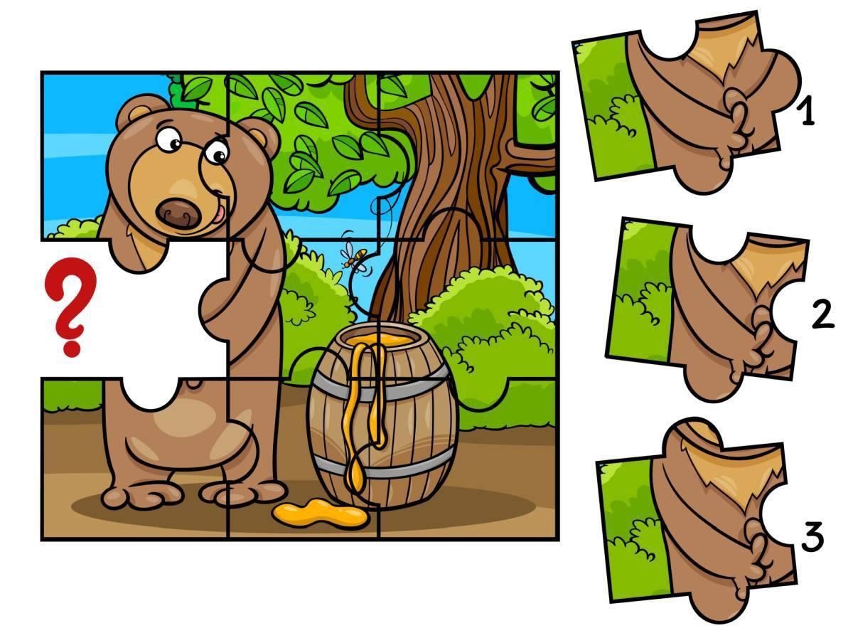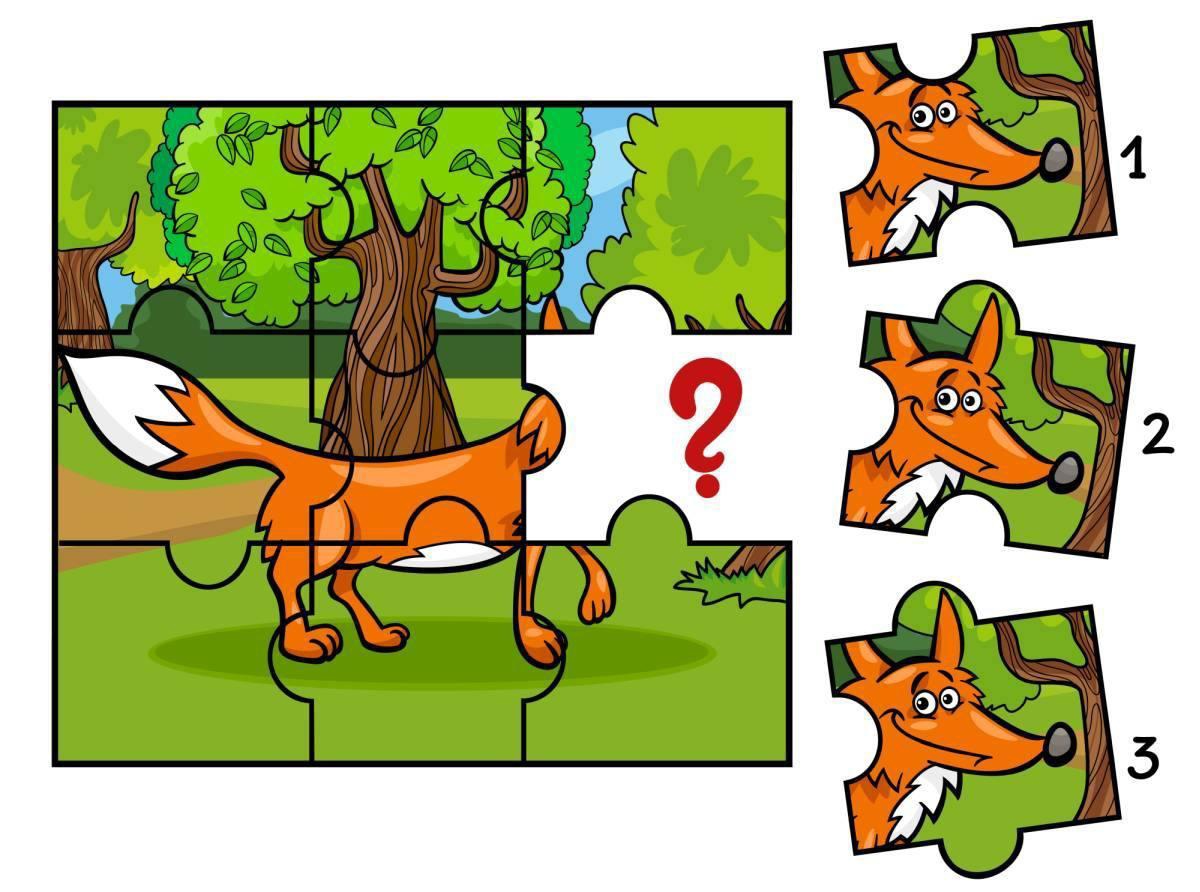Ваша задача - правильно подобрать недостающий пазл, чтобы получилась полная картинка.