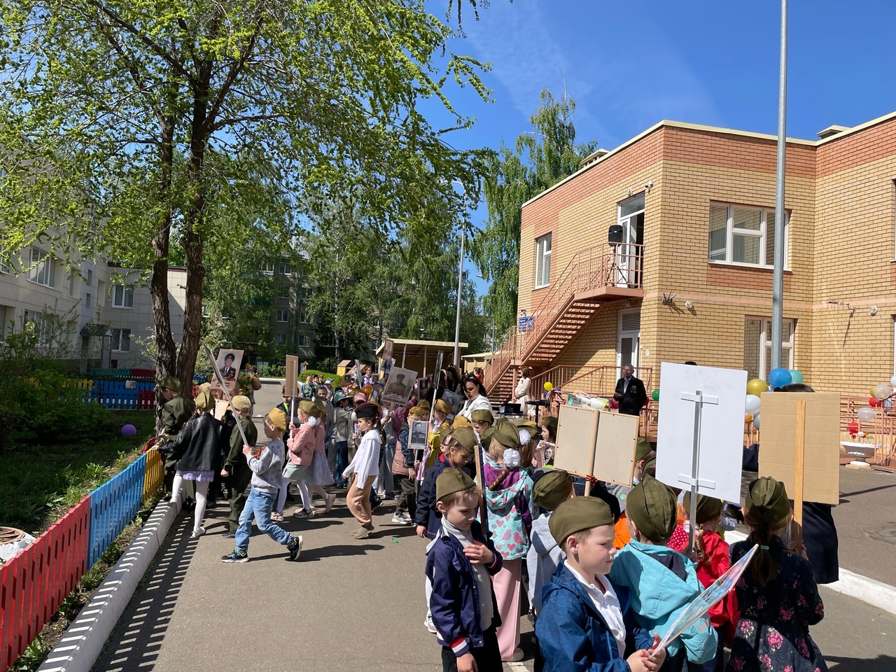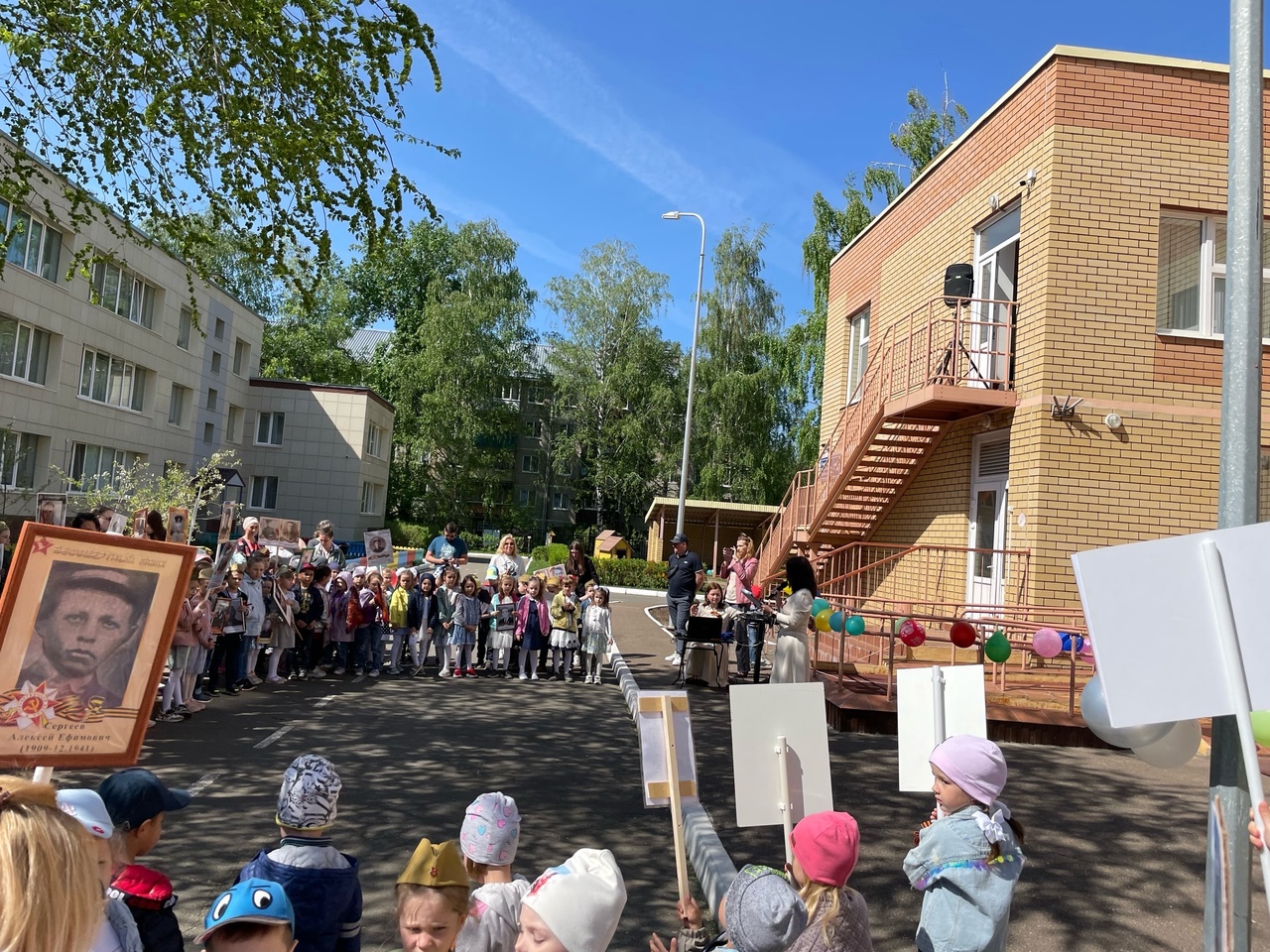 Воспитанники вместе с педагогами подготовили для гостей и зрителей интересную концертную программу - замечательные и трогательные песни военных лет, современные песни о Великой Победе, танцы и стихи в исполнении детей и воспитателей. Участники праздника, стоя, приветствовали юных танцоров. В литературно - музыкальной композиции «Бессмертный полк», малыши с такой серьезностью и ответственностью отнеслись к постановке номера, что зрители просто смотрели на этот мини-спектакль затаив дыхание. Трогательная танцевальная композиция «Катюша» и попурри песен о войне в исполнении педагогов, танец «Красные маки» и вальс «В лесу прифронтовом» в исполнении детей создавали особую эмоциональную атмосферу.