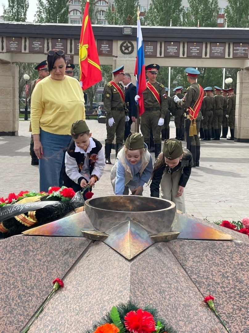 Сегодня воспитанники подготовительной группы №1 вместе с воспитателем возложили цветы к вечному огню в Парке Победы.
