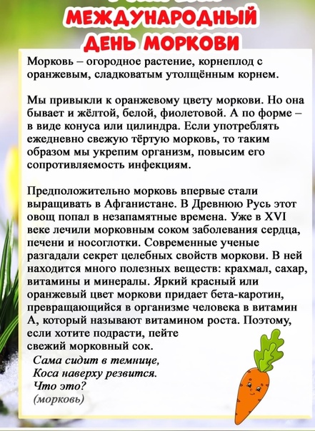 4 апреля -ВСЕМИРНЫЙ ДЕНЬ МОРКОВИ. Беседа. Загадки. Средняя группа №4 .