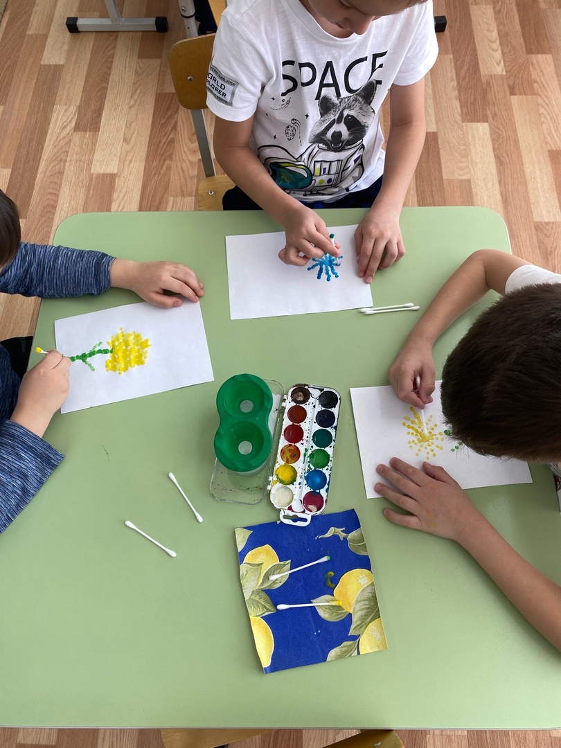 Воспитанники подготовительной группы №3, вместе с воспитателем Абдрахмановой А.И, изучали первые весенние цветы, разгадывали загадки, беседовали о первых весенних цветах, рисовали ватными палочками.
