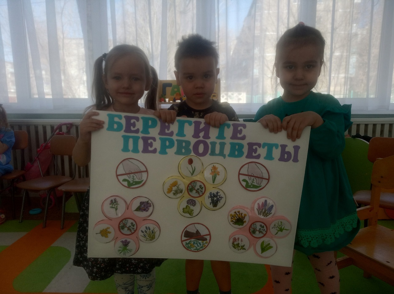 Воспитанники 2 младшей группы 3 с воспитателем Хусаиновой Г.Г. присоединились к акции "Берегите первоцветы". Сегодня они посмотрели обучающий фильм про первоцветы, познакомились со знаками, которые запрещают рвать и топтать цветы, потом сделали стенгазету.