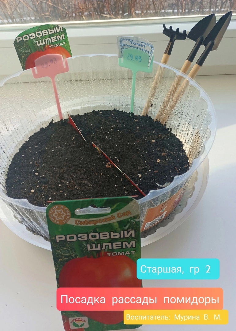 В старшей группе №2 дети совместно с воспитателем Муриной В.М. посадили семена томатов. В ходе работы воспитанники узнали, как сеют семена в землю, для чего это делают, что необходимо для хорошего роста растений. В дальнейшем дети будут наблюдать за всходами и ухаживать за рассадой, делать зарисовки в дневнике наблюдений.