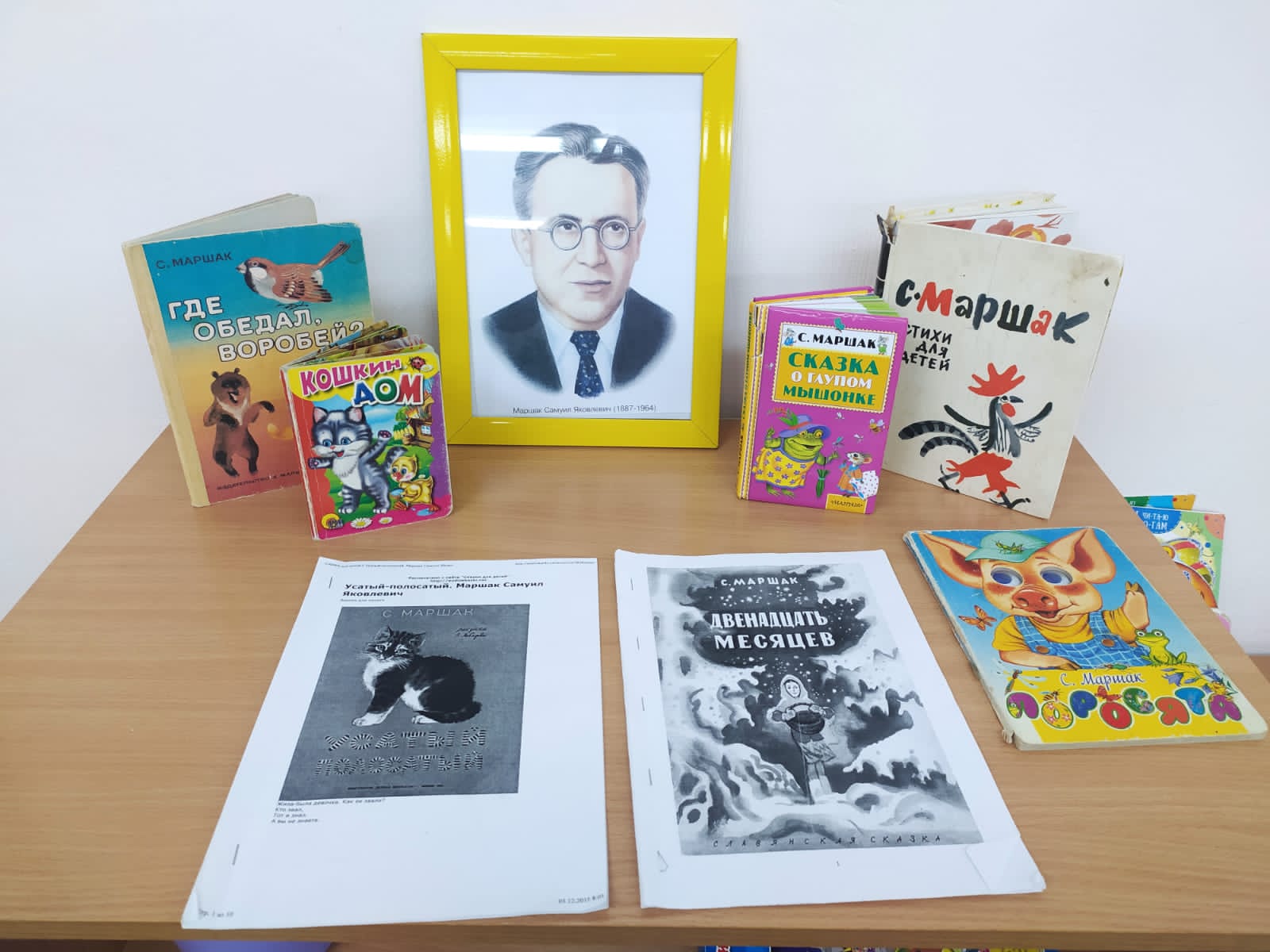 В преддверии юбилея С.Я. Маршака дошкольники совершили "Путешествие в мир книг С.Я. Маршака". В начале дети познакомились с краткой биографией поэта, узнали о его жизненном пути, творчестве, заслугах и наградах за его труды. Дети с большим интересом читали произведения «Жираф», «Тигрёнок», «Усатый-полосатый», «Зебры», «Белые медведи», «Совятки», «Страусёнок», «Пингвин», а также отгадывали загадки.