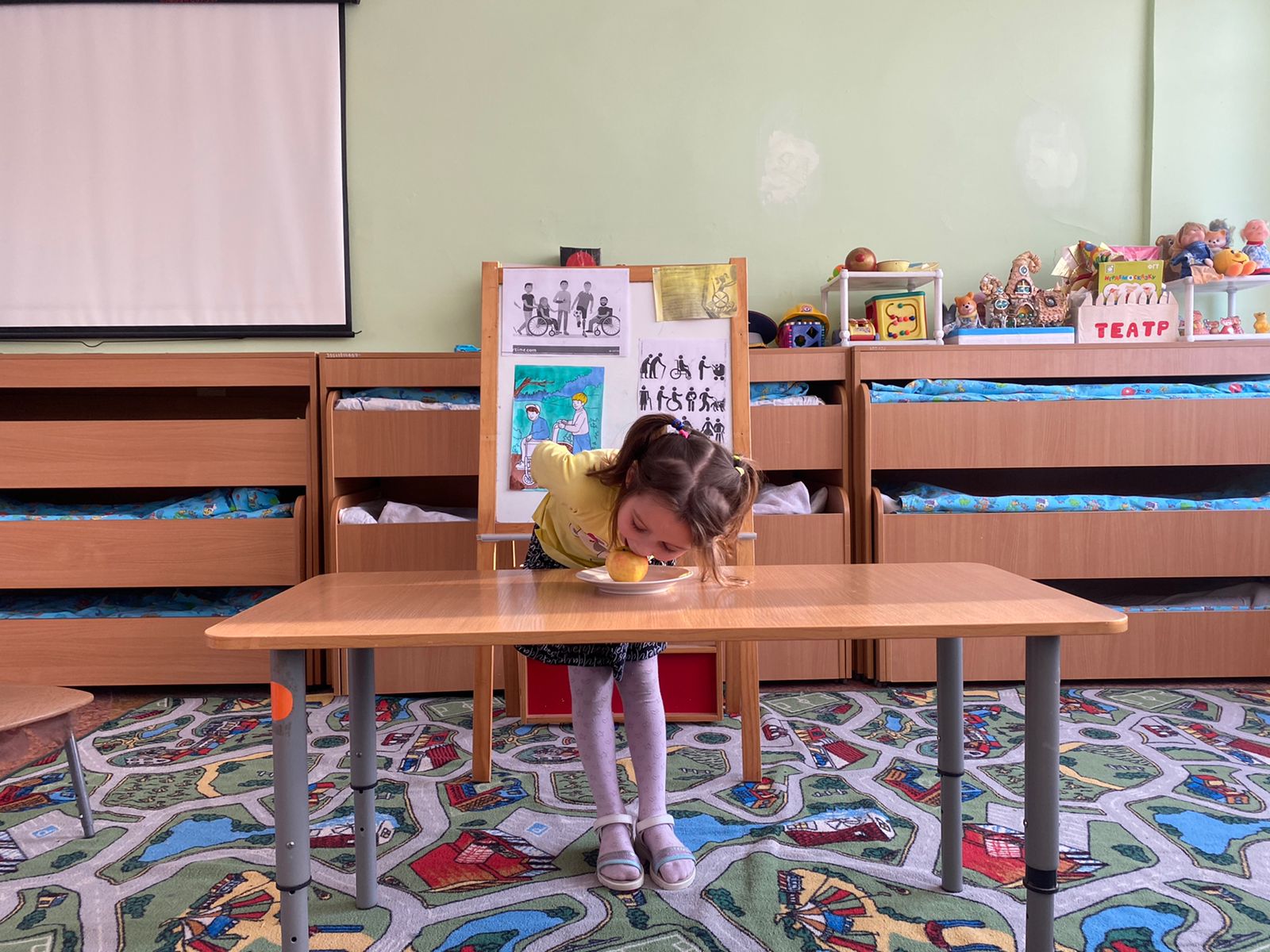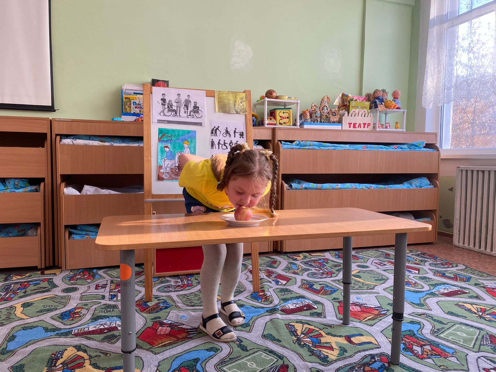 В логопедической группе проведена беседа с детьми на тему «Беседа с детьми по пониманию инвалидности и формированию толерантных установок»Поиграли в игры : «Определи предмет с закрытыми глазами на ощупь». «Покажи картинку жестами». «Съешь яблоко без помощи рук».