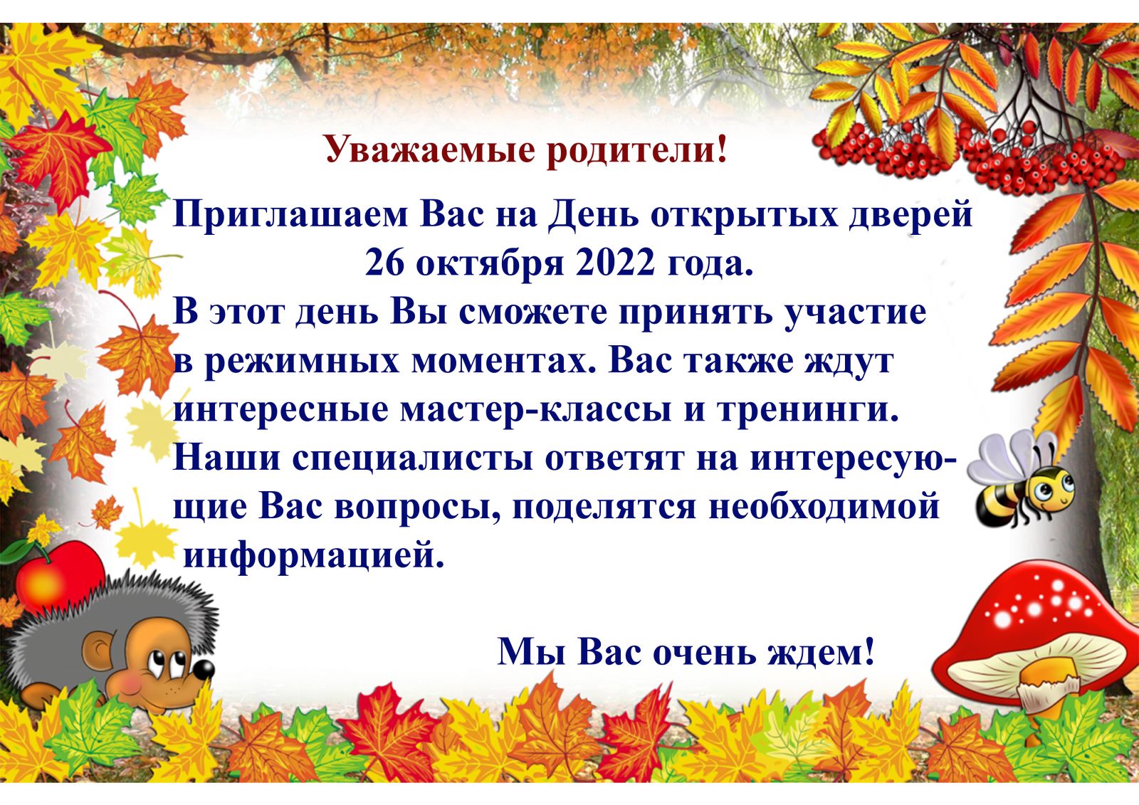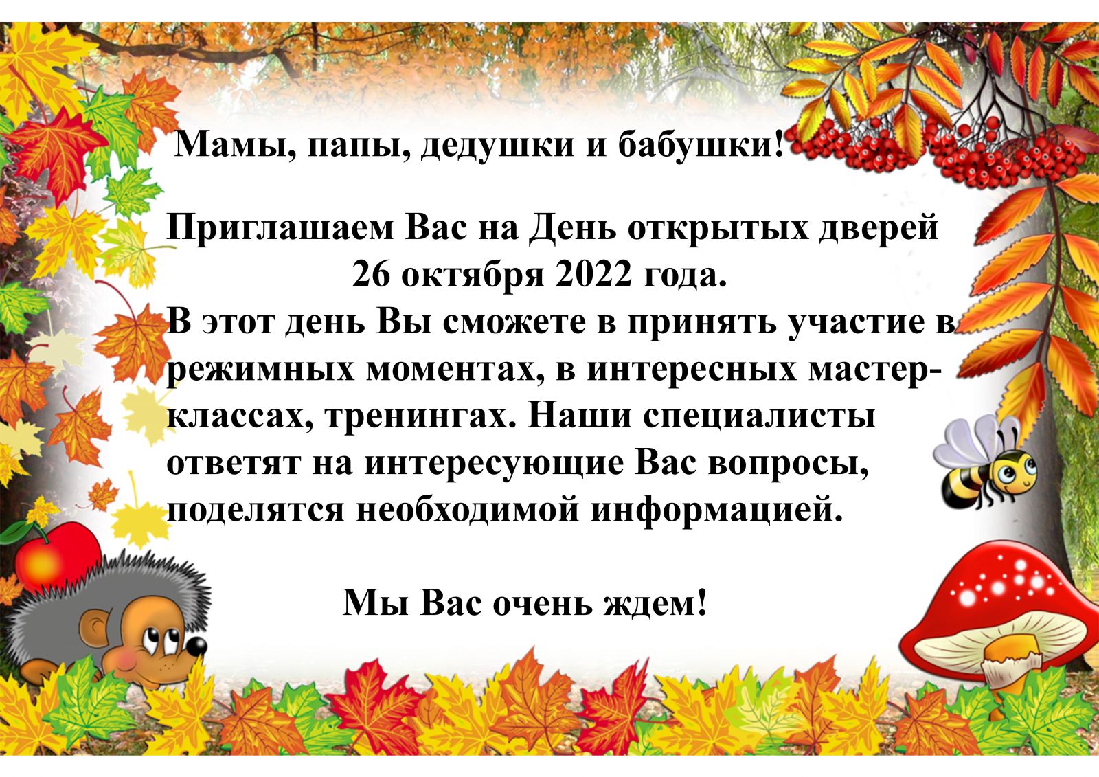 Приглашение на ДЕНЬ ОТКРЫТЫХ ДВЕРЕЙ в ДОУ 24.10.2022