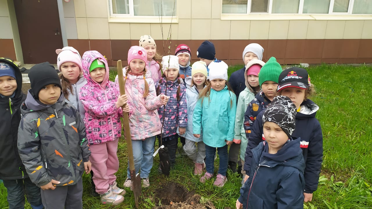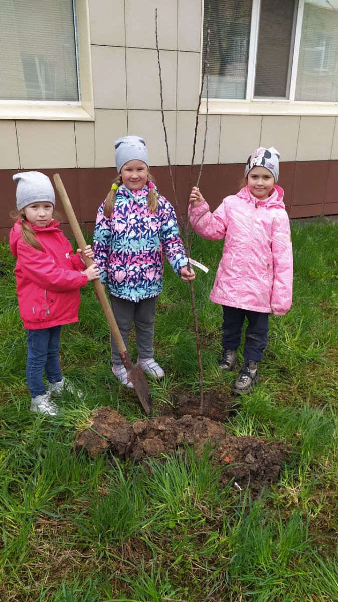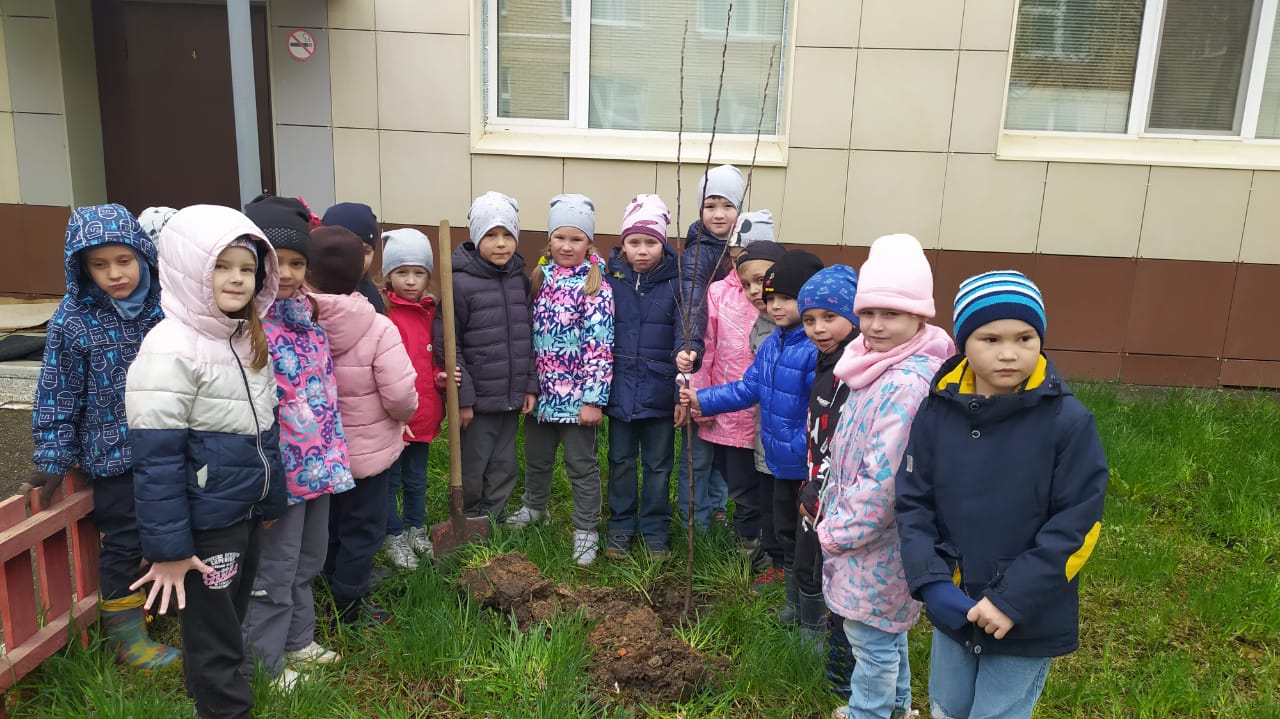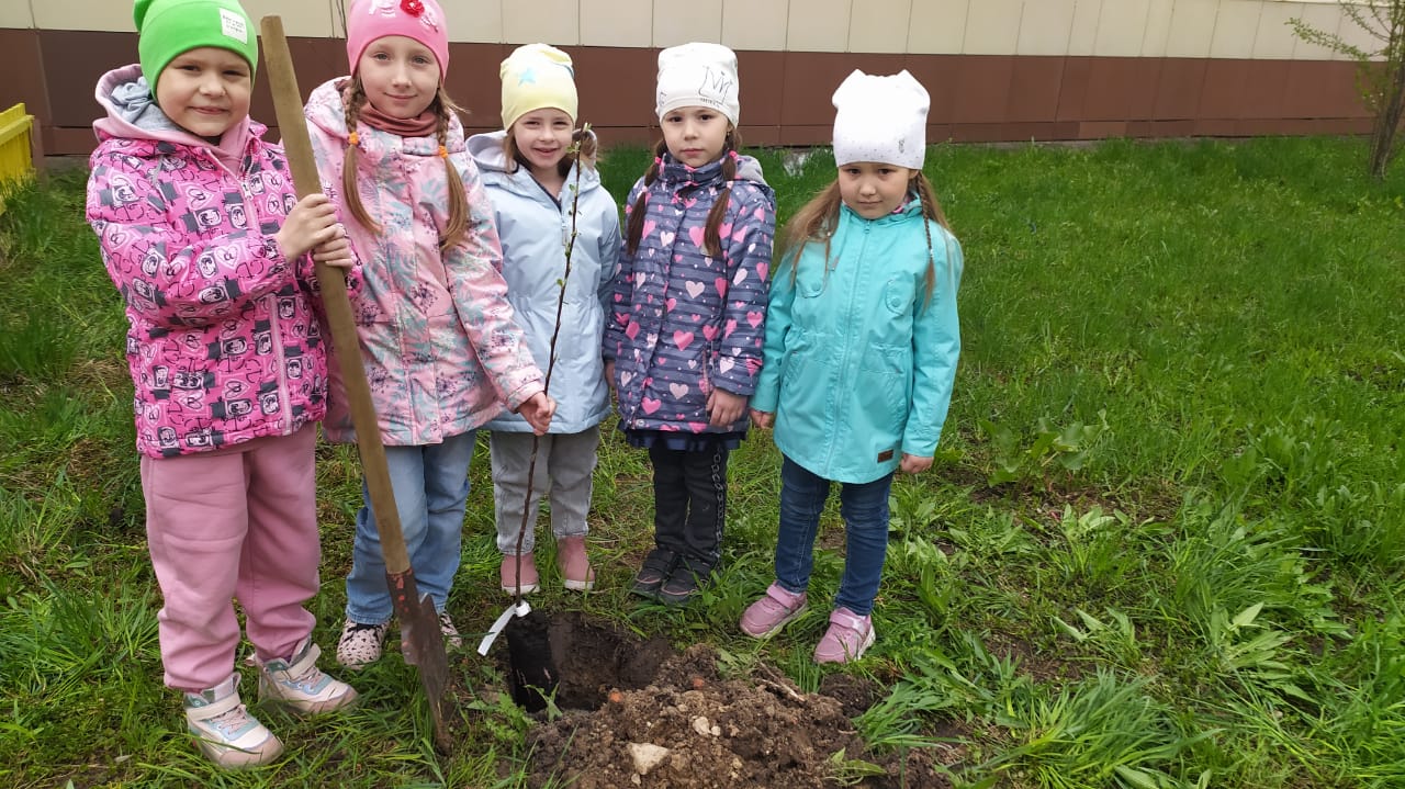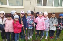 Воспитанники подготовительных групп посадили на приусадебном участке яблони.