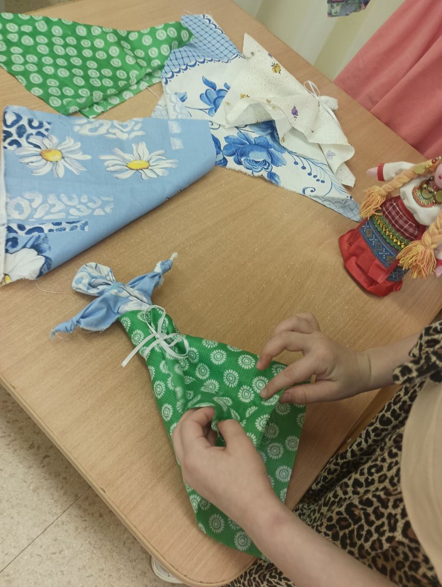 Дети изготовили тряпичные куклы