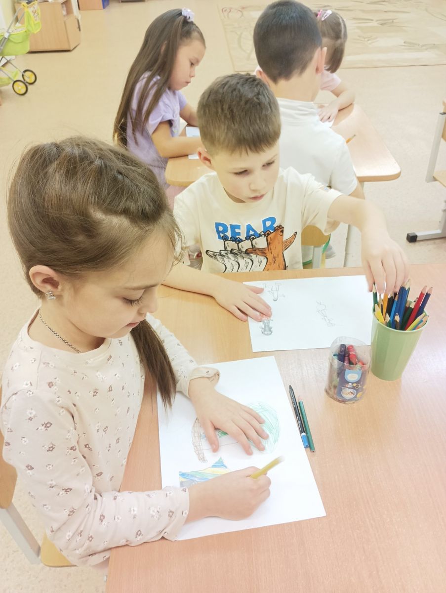 Один из рассказов)) дети нарисовали в своих рисунках. "Девочка на шаре".