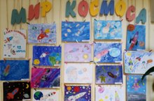 В детском саду оформлена выставка детского творчества "Мир космоса", посвященная Дню космонавтики (12 апреля).