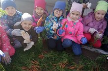 Сегодня воспитанники подготовительной к школе группы №6 собрали урожай моркови в огороде.