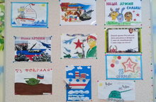 На 1 и 2 этажах ДОУ оформлены творческие выставки детских рисунков "Наша армия сильна", посвященные Дню защитника Отечества.