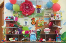 В фойе детского сада организована творческая выставка поделок "Букет для мамы", приуроченная к Международному дню 8 Марта.