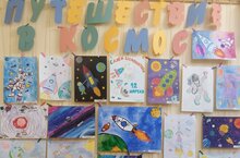 В рамках празднования Дня космонавтики в детском саду оформлена выставка детского творчества "Путешествие в космос" .
