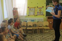 Детям в игровой форме было рассказано об опасностях зимой на водных объектах, а родители были ознакомлены с памятками .