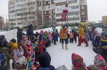 На уличной площадке детского сада состоялся музыкальный народный праздник "Масленица" с песнями, танцами и шутками.