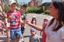 В детском саду состоялась акция «Подари детскому саду цветок». Родители и дети принесли уличные цветы для украшения групповой клумбы: петунии, колокольчики, анютины глазки, примулу, мускари и др. Детки участвовали в высадке цветов, учились ухаживать за ними, запоминали непростые названия растений. А потом все вместе радовались нарядной клумбе! Теперь каждый раз, проходя мимо, ребята находят свой цветочек и с улыбкой говорят: «Это - мой!».