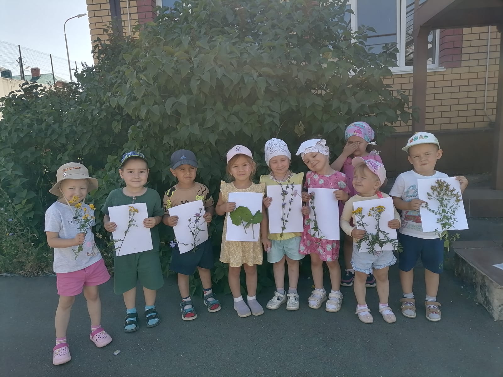 Воспитатель второй младшей группы, Чулпан Рифатовна принесла с собой корзинку с растениями. -Ребята, подойдите, посмотрите, полюбуйтесь их красотой, понюхайте их. Что вы чувствуете, когда вдыхаете аромат трав? Конечно свежесть, приятный, тонкий запах. Остановить кровь – подорожник. Кашель – мать-и-мачеха. Болит горло – ромашка. Простуда – душица. Ожог ноги – зверобой.Пятна на коже – чистотел.