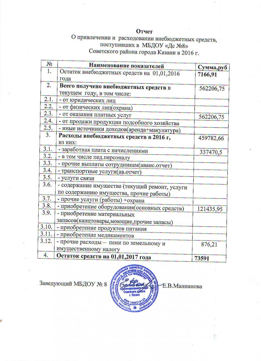 Отчет о привлечении и расходовании внебюджетных средств 2016