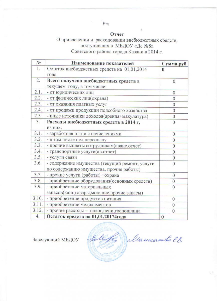 отчет о привлечении и расходовании внебюджетных средств за 2014