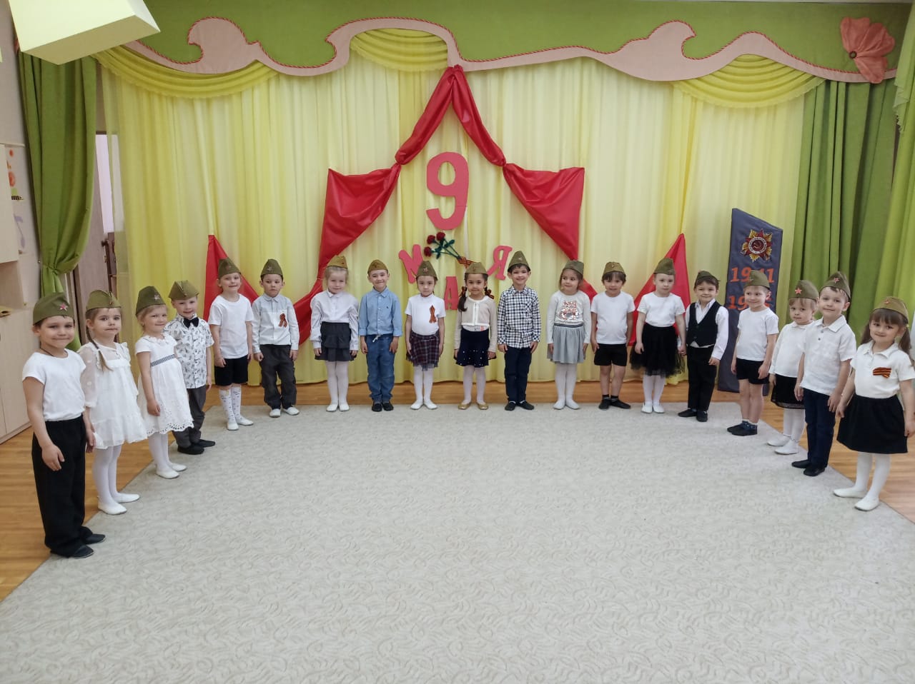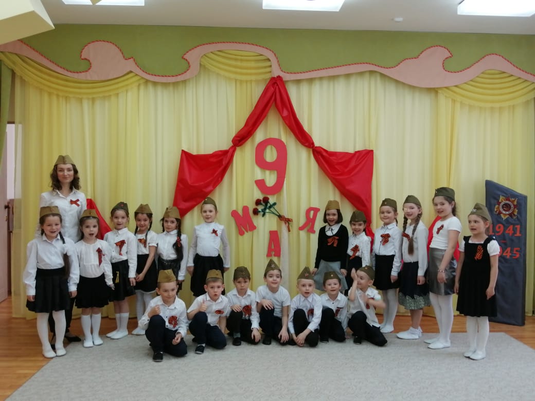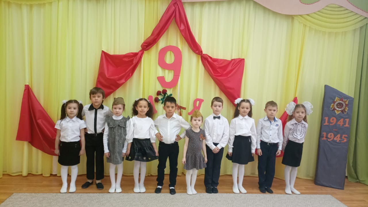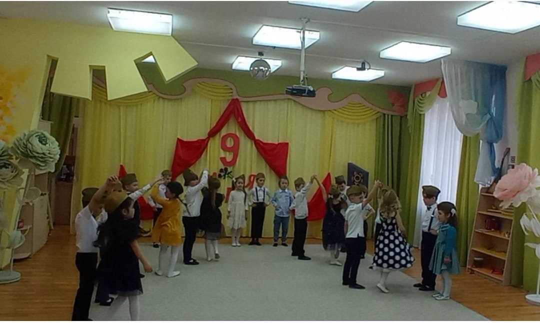 Педагоги с детьми проводят беседы о празднике 9 мая, вспоминают героев нашей страны, героями были все, не только великие полководцы, но и простые солдаты, которые смело защищали свою Родину. Люди в тылу, которые работали только ради победы, и те самые маленькие труженики, ровесники наших дошколят, которые изо всех сил старались помочь своей стране и своему народу! В музыкальном зале для воспитанников состоялся тематический праздник «Днь Победы». На празднике дети с чувством особой благодарности читали стихи, исполняли песни.