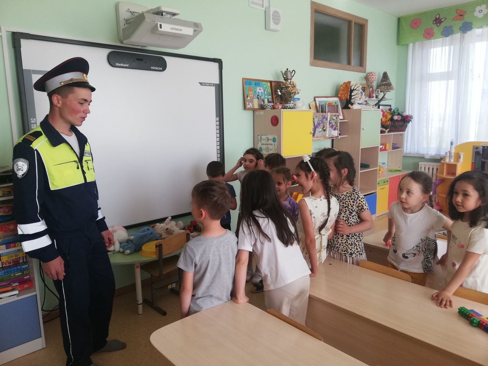 Инспектор рассказал о правильном и безопасном поведении на проезжей части, о правилах езды на велосипеде. Объяснил дошкольникам, почему дети до семи лет должны ездить в автомобиле в детском кресле, зачем нужны светоотражающие элементы на одежде. Вместе с полицейским дети вспомнили основные правила пешеходов. Инспектор полиции отметил, что необходимо неукоснительно соблюдать правила дорожного движения и не поддаваться отрицательному влиянию.