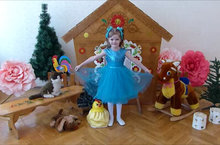 Декорации полифункциональны. Задник оформлен в виде летнего леса, но есть возможность перекрыть его для обыгрывания, например зимней сказки.