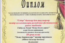 Театральный коллектив группы №9 нашего детского сада занял 3 место на районном этапе Фестиваля детских юношеских театров «Сәйяр» с инсценировкой сказки Г.Тукая «Коза и баран»!