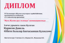 Воспитанник 8 группы нашего детского сада Идрисов Данель занял 1 место районного этапа IV Международного литературного конкурса чтецов «Җәлил укулары» («Джалиловские чтения»)!