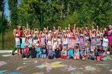 Наш детский сад провел для детей мероприятие в честь дня города. Дети рисовали на асфальте мелками символы города: башню Суюмбике, флаг РТ и и т.п.