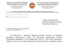 В соответствии с решением Правительственной комиссии по вопросам реализации Федерального закона «О бесплатной юридической помощи в Российской Федерации» от 25 сентября 2013 года № 2 с 2013 года в Республике Татарстан ежегодно 20 ноября проводится всероссийский День правовой помощи детям. Организатором всероссийского Дня правовой помощи детям на территории республики является Министерство юстиции Республики Татарстан.