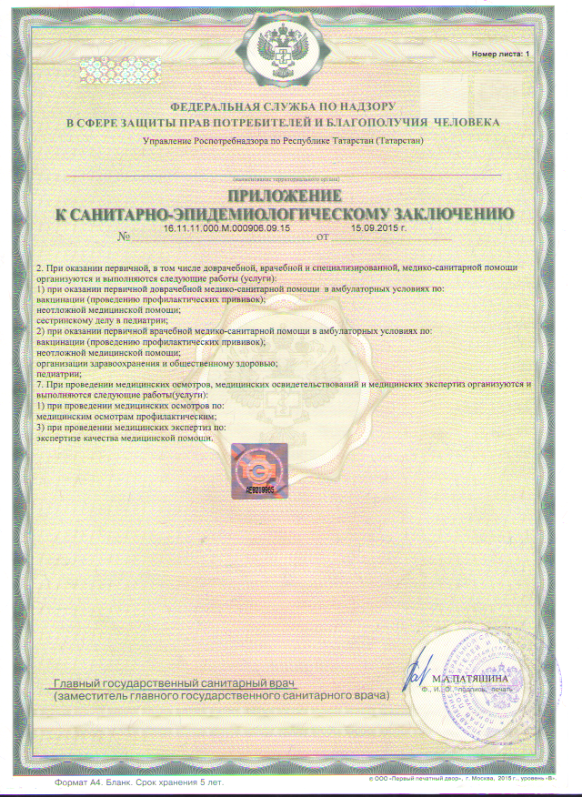 Санитарно-эпидемиологическое заключение от 15.09.2015