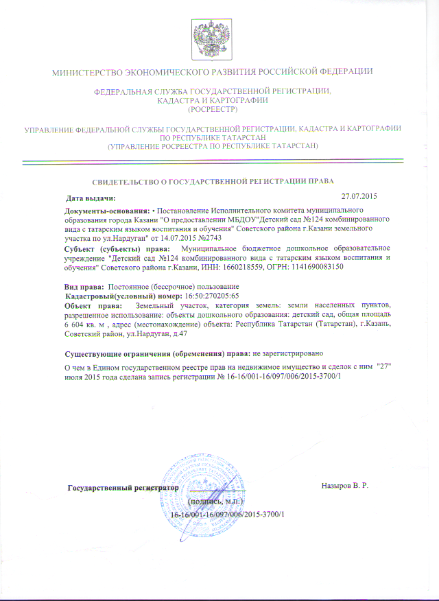 Муниципальное бюджетное дошкольное образовательное учреждение «Детский сад №124 комбинированного вида с татарским языком воспитания и обучения» Советского района г.Казани