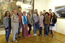 Бүген, 2015 елның 12 май көнендә, безнең мәктәптең 10 сыйныф укучылары «Хәзинә» милли сәнгать галереясендә булдылар. “Хәзинә” - Татарстанның сынлы сәнгать музееның бүлекчәсе. Казан Кремлендә әүвәлге Юнкерлар укуханәсе бинасында урнашкан. Галереянең төп экспонатлары – Татарстан рәссамнарының һәм сынчыларының сынлы сәнгать, графика, декоратив-гамәли сәнгать әсәрләре. Укучылар галереядә күренекле рәссамнарның бер урынга тупланган сирәк очрый торган иҗат хезмәтләрен күрделәр. Әлегә (25 апрельдан 1 июньга кадәр)уза торган атказанган Россия Федерациясенең рәссамы, Татарстан Республикасы атказанган сәнгать хезмәткәре Попов Владимир Александрович эшләренең күргәзмәсендә дә булдылар. Анда балалар рәссамның живопись, графика һәм каллиграфия ңанрында ясалган рәсемнәрне күрделәр. Россия Федерациясының рәссамнар союзының әгъзасы, 1941 елдан 1945 елга кадәр Бөек Ватан сугышында катнашучы,18 медаль яулаган Владимир Попов хәзер 92 яшьтә.